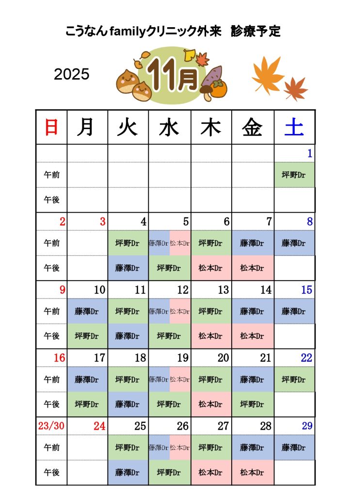 AM 9:00~12:30 | 藤澤 | 坪野 | 藤澤/ 松本 | 藤澤 | 坪野/ 松本 | ★ | × |
